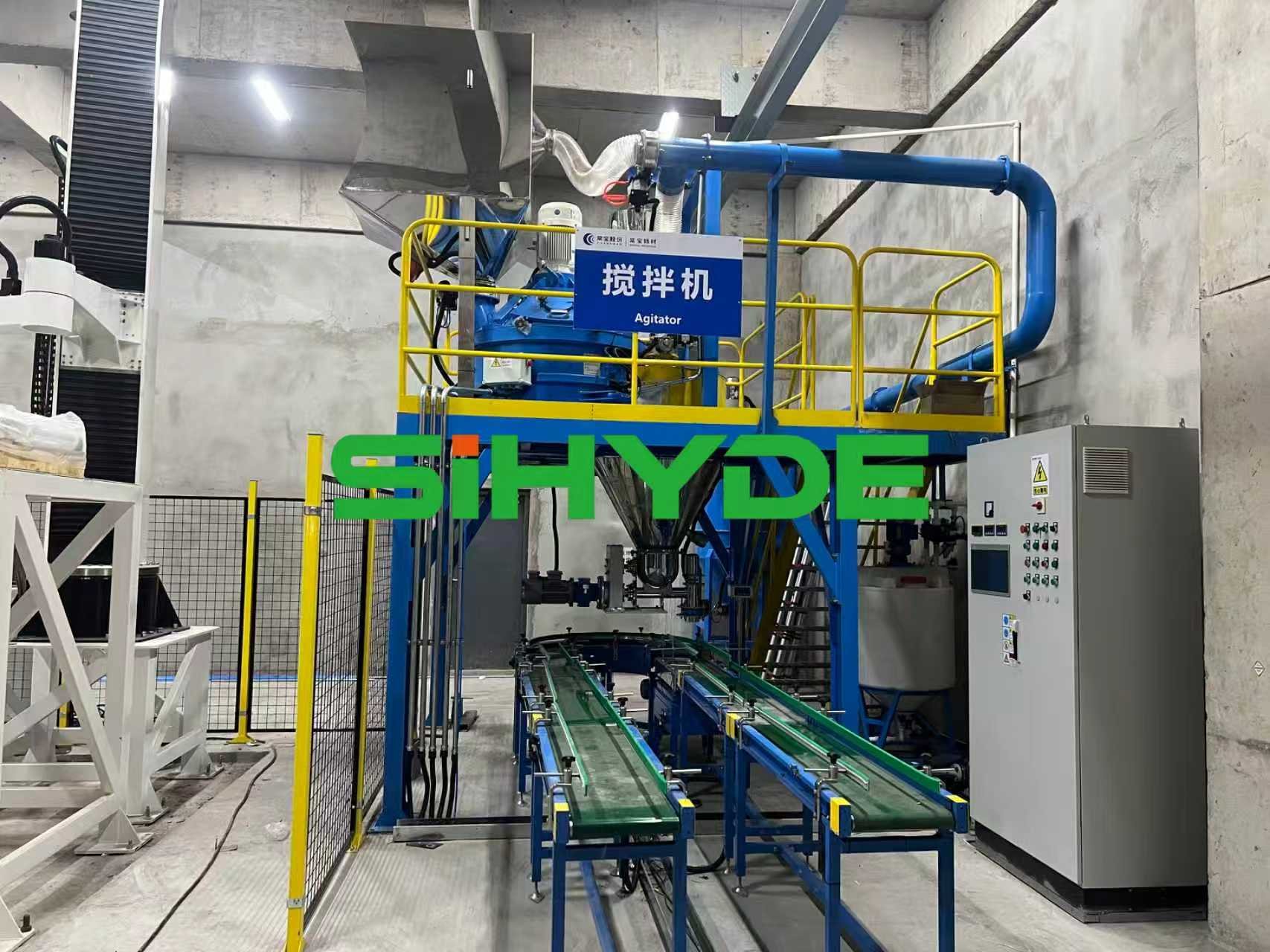 在安全保障方面,系统严格遵循工业现场规范,人孔、观察孔加装防护网,检修门配备安全锁,地坑入口设置可上锁门,动力源切断开关符合 EN 60947-3 标准,控制柜防护等级达 IP54,整机金属结构可靠接地。同时,控制系统与客户自备搅拌机实现硬接线联锁,有效防止溢料事故,保障上下游工序协同安全。