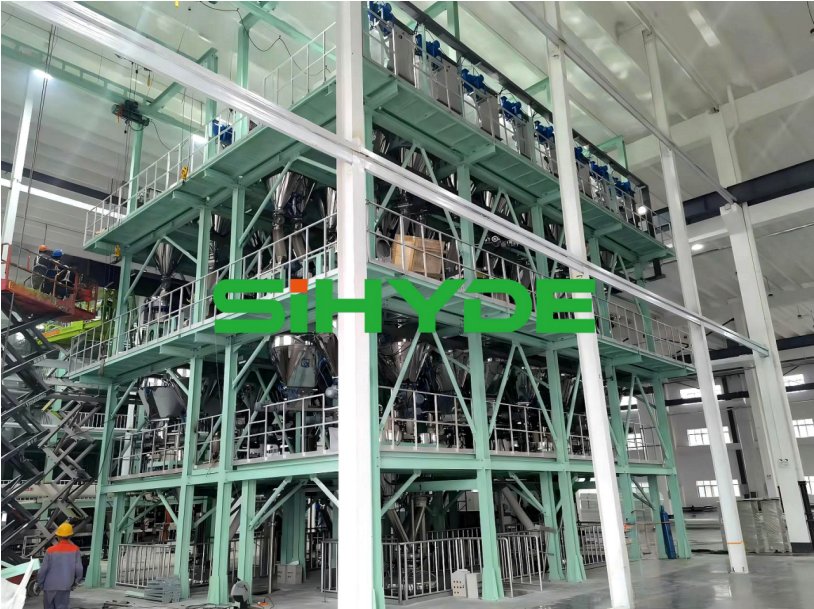 - 采用电动葫芦吊装吨包至拆包站,结合人工扫码验证机制:只有条码匹配正确方可开启拆包门,有效防止物料误投,确保原料追溯性。