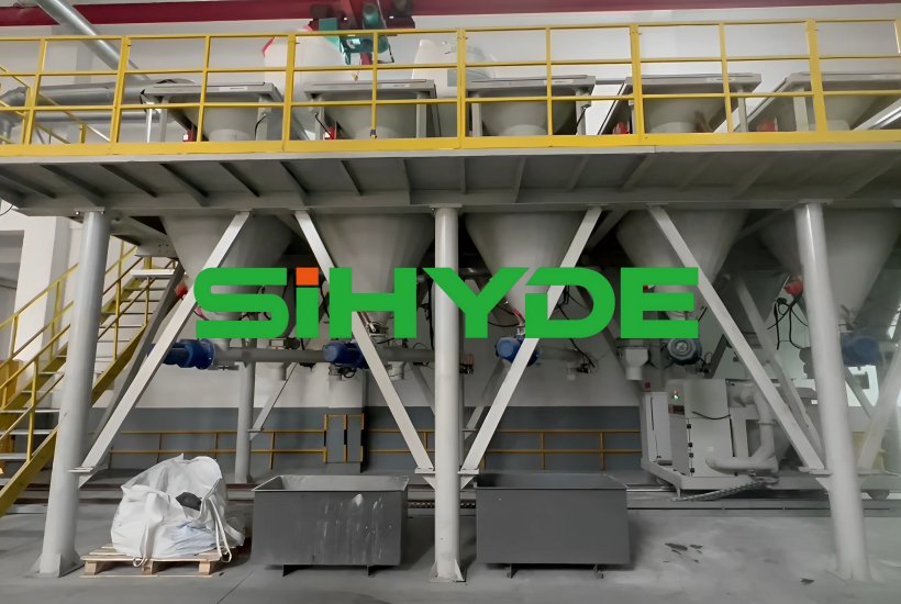 中海德自动化的这条配料生产线,以细节设计彰显技术实力。喂料系统采用变频控制实现粗加、精加双阶段供料,搭配托利多压式传感器,将称重误差严格控制在 ±0.5% 以内,确保配比精度可视化、可监控。针对粉料易架桥、堵塞的行业痛点,生产线集成助流气碟、振动电机等多重破拱措施,保障物料流转顺畅。环保方面,物料全程密闭输送,搭配独立滤筒除尘器或集中除尘系统,有效减少粉尘外溢,守护车间环境。
